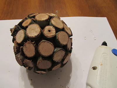 Step 9: Continue gluing until your ornament is covered with woodsy goodness.