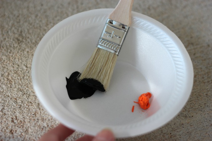 Step 2: Paint your baby feet however you like. I liked the black and orange stripes. My little one tells me that paintbrushes on your feet “tickles”, so expect some squirming!