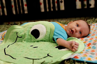 Thank you Happy Blankie for allowing Logan to review Stomp the Happy Frog Blankie – he loves it!