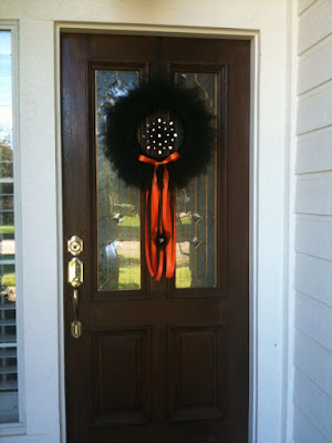She emailed, “Saw your Halloween Wreath on your website and really liked it and so I made one just a little different. I purchased all items (that were on sale) at Hobby Lobby…they had Christmas ornaments up and purchased two black ornaments for the wreath. Everyone has gone wild over the concept of the tulle Halloween Wreath. I enjoyed making it a little different. Thank you for the idea!”