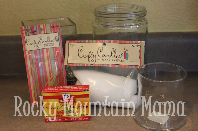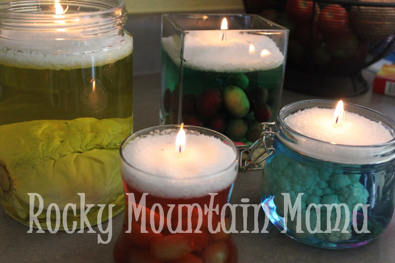 First of all, thank you so much to Vanessa for giving me the opportunity to do a guest post on her amazing blog. I was over the moon when she asked me to share some of my crafty skills with her readers. Last Halloween, I decided to purge some of our old childhood decorations and try to come up with some more modern and not so cheesy ideas. But I didn’t want to spend an arm and a leg buying new decorations at a retail store. So, I ended up making my own window silhouettes, a spooky wreath to hang on the door and some cheesecloth ghosts to hang from our tree. This year, I wanted to continue with the “Halloween on a budget” theme. When Vanessa asked me to do a guest post for her, one of the first projects that popped into my mind was Martha Stewart’s specimen jars. Off I went to one of my favorite hobby stores and I was totally bummed when I the one thing that looked similar to the Encapso K was $25/bottle. And they weren’t very large bottles. Then, I checked the recommended website and found that was the going rate. In keeping with my “Halloween on a budget” theme, I decided to go with plan B – making specimen jar candles. A much cheaper option, with (I think) and even cooler effect. And the great thing about this project is that kids can help too!