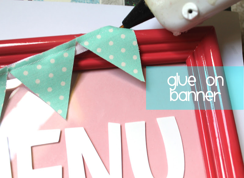 Step 5:Lastly, glue on your fabric banner you made earlier.