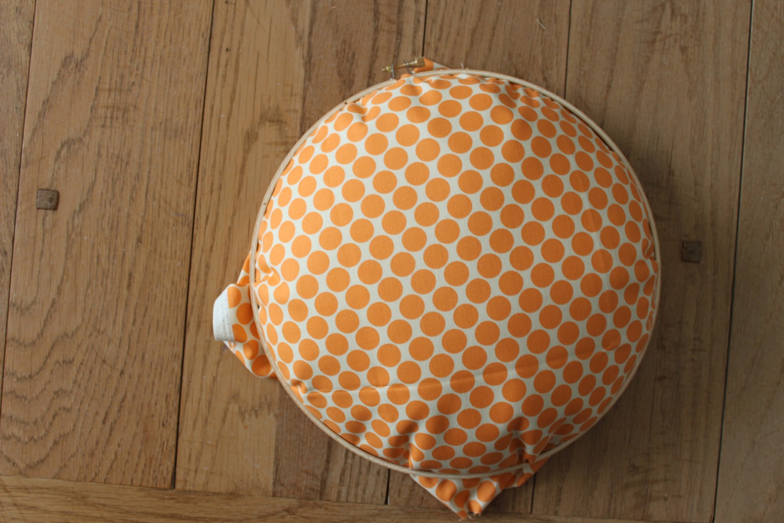 Step 1: Trace the interior piece of your hoop onto some cardboard. You’ll need this to help hold the stuffing in.
