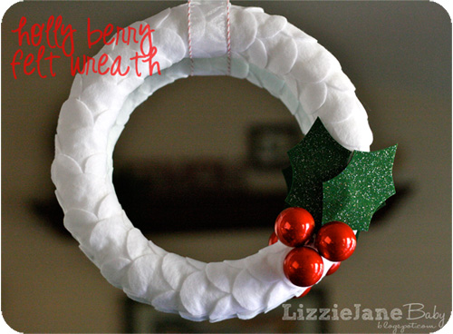 I’d like to welcome my bloggy friend Liz of LizzieJane Baby, she’s showing us how to make a super cute felt wreath for 20 Crafty Days of Christmas. Gorgeous, I need one of these wreaths hanging on my door!