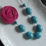 I love the Fuchsia and Gray Rosette Bib Necklace