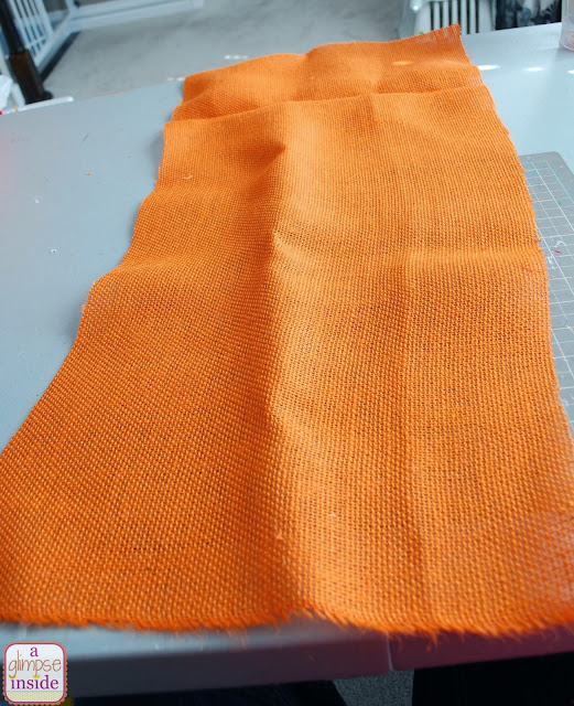 I took one end of the burlap and folded it over and glued it down to help prevent fraying.