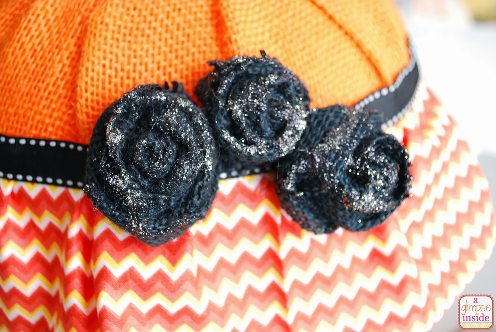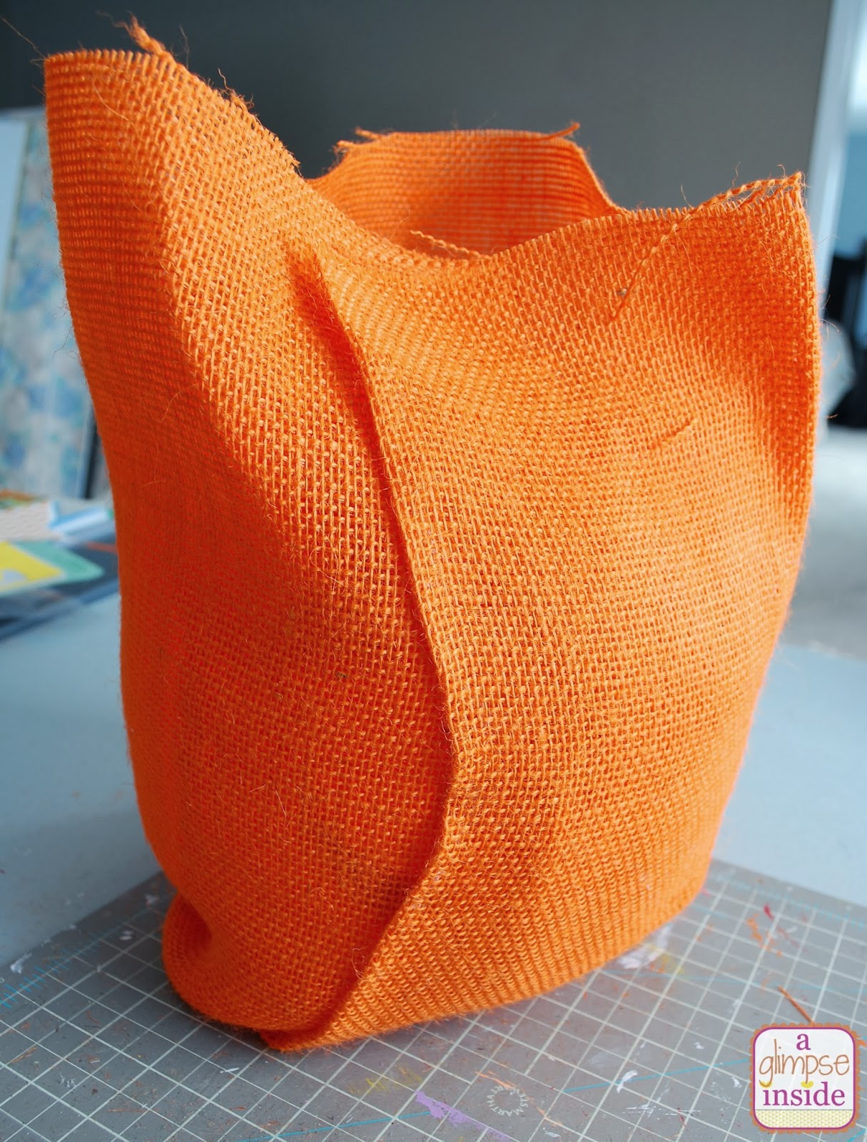 I turned the pumpkin sideways and glued the burlap to the pumpkin.