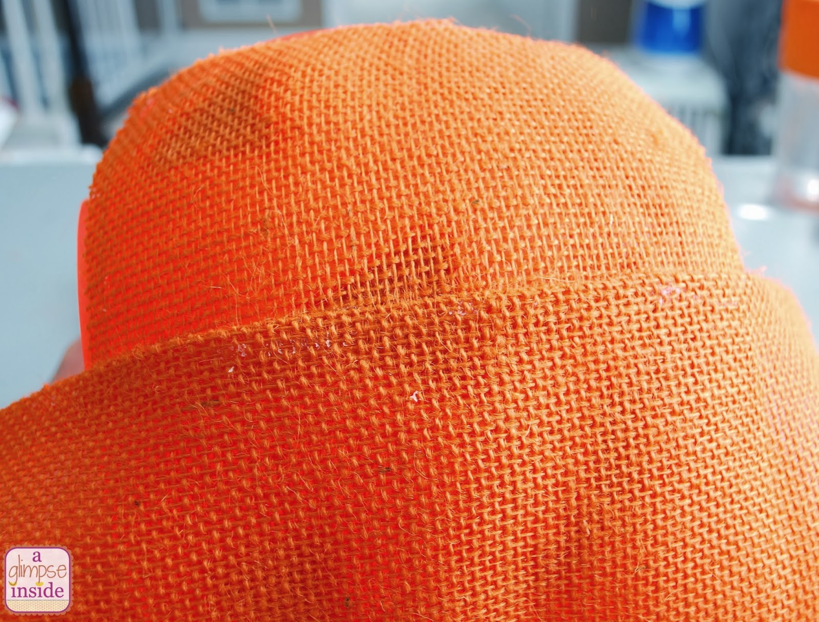 I then cut a square of orange burlap just big enough to cover the face for an additional layer to hide it and glued it to the pumpkin.
