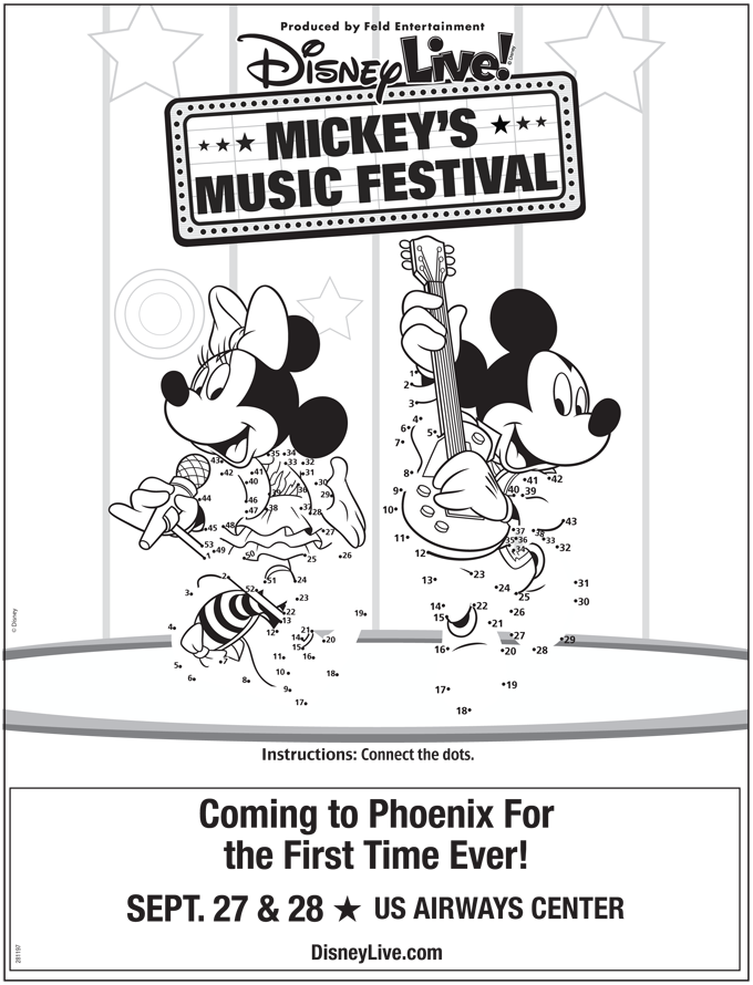 Mickey Mouse and his band of friends, Minnie Mouse, Donald Duck and Goofy will be performing in a music mash-up of mega proportions when Disney Live! Mikey’s Music Festival comes to US Airways Center September 27-28, 2014. Concert goers will hear greatest hits from the blockbuster movies Aladdin, The Little Mermaid and Disney/Pixar’s Toy Story remixed to rock, pop, reggae, hip-hop, jazz and country, among other jams.