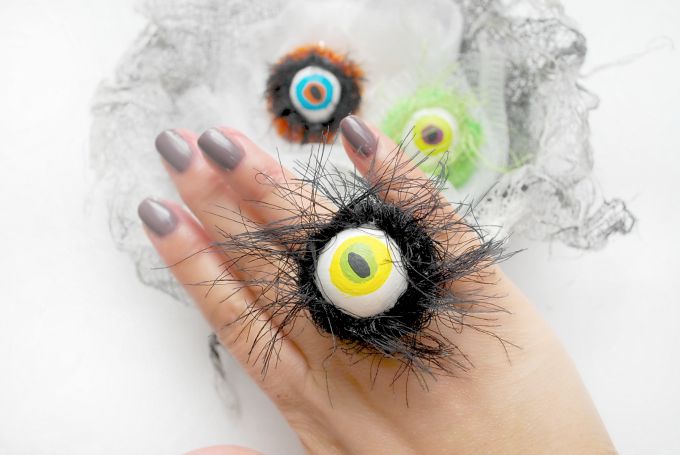 Hello everyone! My name is Steph, and I blog at The Silly Pearl, where I write about crafts, home, and making memories with my husband and 8-year-old twin girls. I’m so excited to be a part of See Vanessa Craft’s 30 Days of Halloween! This is one of my favorite crafty times of year and I love to make Halloween crafts that make my girls go “EEWWW!” or “EEEK!” with a giggle afterwards. Today I’m sharing how to make these Hairy Monster Eyeball Rings. It’s a fun and easy craft to make. Here’s how!