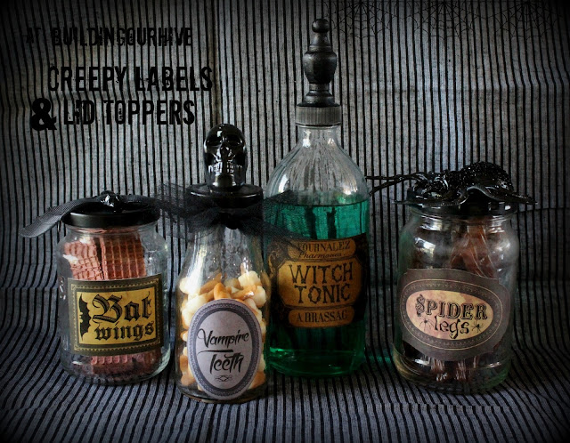 Creepy Halloween Labels and Lid Toppers from Building Our Hive